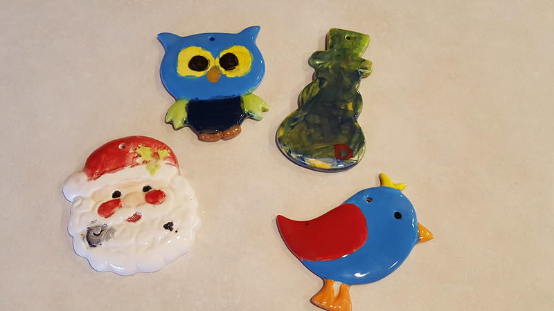 This year I decided it would be fun for the girls to paint their own ornaments for the tree so early in December we headed to Van Grow to paint. Below shows the finished product after they were fired and we picked them up 2 weeks later.