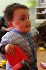 While Mike was working this afternoon Nadia and I went to the grocery store. We dropped the stuff off at the apartment and headed back out to go exploring. I wanted to do a reconnaissance trip to the other bakery to see if they offered as good or better items than the place closer to us. Next door to the bakery is a little shopping area that is made up of a bunch of little stalls selling clothes, shoes and undergarments. Nadia and I strolled through the whole place causing a commotion. One woman came up and asked if she was Chinese and I was able to tell her IN MANDRIAN, “Yes, but now she is American.” The lady said, “Hen Hao, Hen Hao.” or That’s good. There was the cutest little jammie place in there, but the large looked like a petite small. I knew they wouldn’t fit when the guy didn’t even TRY to get me to come into his stall to convince me to buy some – even though I was looking at his wares very closely. I told Mike when we got back that going through that little place made me feel like I was the size of a whale. Which is insane because I am not overweight or something. It’s a good thing I don’t worry about stuff like that or living here would give me a complex. The funniest thing is that they had a place with fancy little Victoria Secret type bras in all colors, but they all looked the size of a middle school girls training bra!