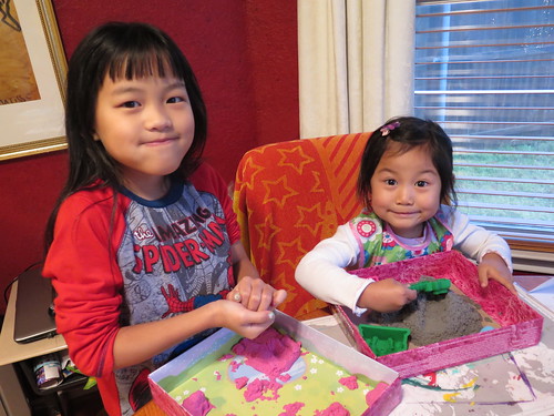 Kinetic sand, beads and Minecraft Legos.