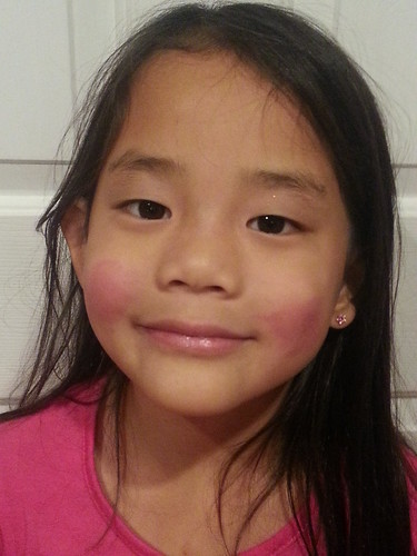 Amelie got a Hello Kitty Makeup kit and this was her first attempt.