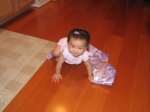So she did it two more times with more laughing and cheering and then decided she was done with that and it was time to play. We knew she “could” do it, but she just prefers us to do it. She cracks me up. She is also cruising the furniture like a speed racer and more and more often I see her let go with both hand and try to stay up. She collapses almost immediately, but it’s fun to see her try.