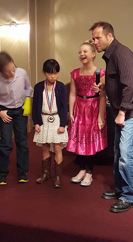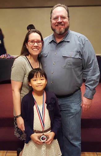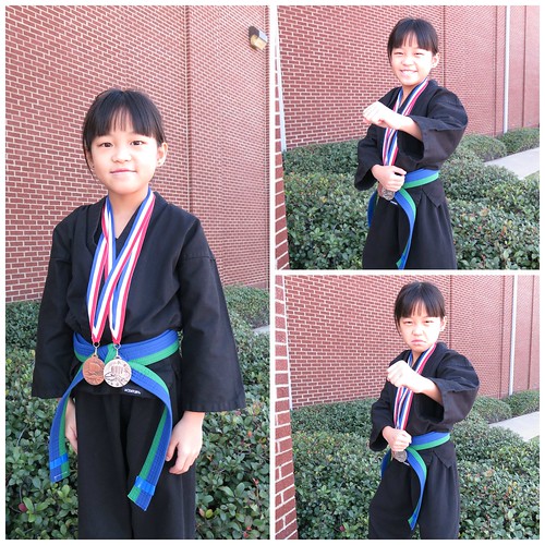This is Nadia and Lyric after they competed. Nadia was 3rd in Kata (forms) and 2nd in sparring. Lyric took 1st in both and Nadia was so excited for both of them. Look at that smile!
