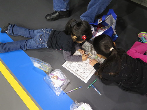 Dani and Amelie keeping busy while waiting around for Nadia to compete.