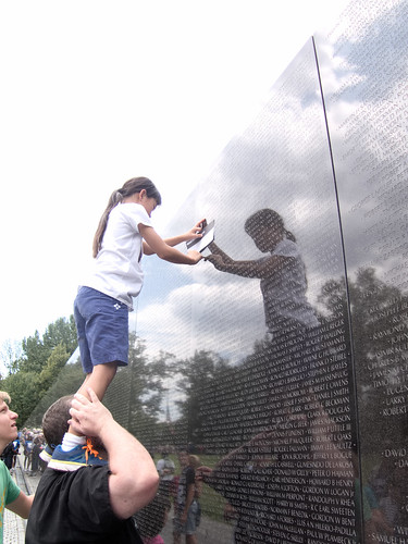 At last we worked our way over the Vietnam Memorial. It’s hard to express how emotional this was to see Nadia standing on Mike’s shoulders to take a rubbing of her grandpa’s name. It was a very different experience for Mike to come here now that we have children.