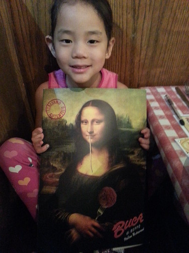 Amelie was making us laugh talking all about how the Mona Lisa had to drink an entire bottle of wine by herself because her meatball was so big.
