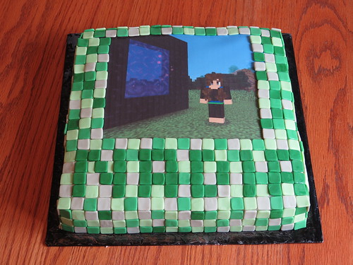 Nadia’s request for this year was a Minecraft Cake. Whoa! Around 400 tiles and a screen caputre printed on icing paper with edible ink. (I bought that from a local cake supply store) Once I started to build it I realized that I didn’t have enough tiles so Nadia helped me crank out another 100 or so.