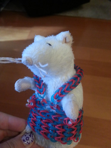 Then Nadia made a rainbow loom outfit for her toy rat.