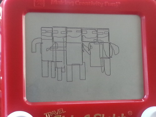 Amelie made our family with the Etch a Sketch.