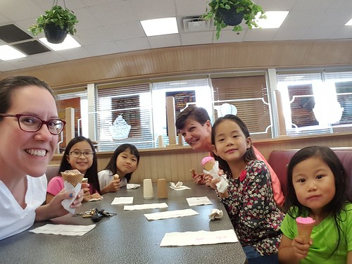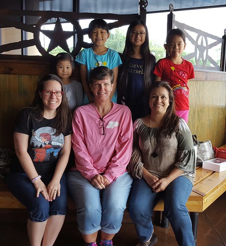 Kathy and Rieley came to visit us at the beginning of May and we had such fun in a short time. The girls were happy to play, play, play, but we had a lot of tasty food too. We started the visit by meeting Laura at Cotton Patch for lunch. I was happy that Kathy and Laura met in person and Kathy bought some Lulu Pops. YUM!