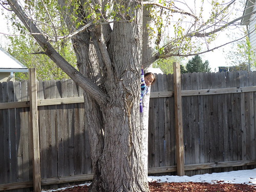 There was a tiny bit of snow to play in so Dani wanted to investigate.