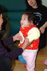 While Mike was working this afternoon Nadia and I went to the grocery store. We dropped the stuff off at the apartment and headed back out to go exploring. I wanted to do a reconnaissance trip to the other bakery to see if they offered as good or better items than the place closer to us. Next door to the bakery is a little shopping area that is made up of a bunch of little stalls selling clothes, shoes and undergarments. Nadia and I strolled through the whole place causing a commotion. One woman came up and asked if she was Chinese and I was able to tell her IN MANDRIAN, “Yes, but now she is American.” The lady said, “Hen Hao, Hen Hao.” or That’s good. There was the cutest little jammie place in there, but the large looked like a petite small. I knew they wouldn’t fit when the guy didn’t even TRY to get me to come into his stall to convince me to buy some – even though I was looking at his wares very closely. I told Mike when we got back that going through that little place made me feel like I was the size of a whale. Which is insane because I am not overweight or something. It’s a good thing I don’t worry about stuff like that or living here would give me a complex. The funniest thing is that they had a place with fancy little Victoria Secret type bras in all colors, but they all looked the size of a middle school girls training bra!