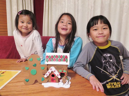 The two days following Christmas were filled with playing and relaxing together at home. We didn’t do a gingerbread house before Christmas, so the girls did one after.