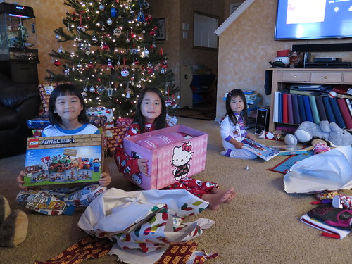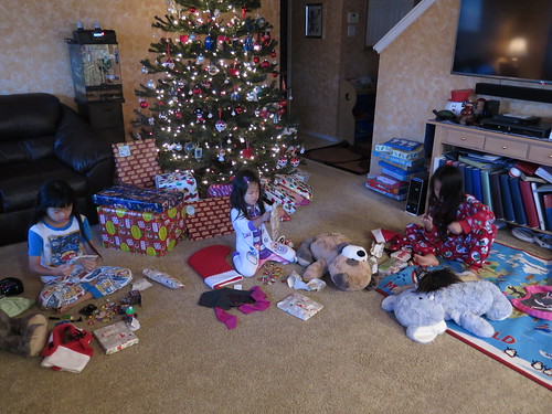 On Christmas Eve Nadia asked if we could wake up early for Christmas. I said, “Sure, what time?” She said, “How about 8? I will set my alarm and wake everyone up.” That made smile and think about our homeschool perks. But when she went to tell Amelie is was time to get up, Amelie popped up so fast she hit her face on her bunk bed and started a massive nose bleed! I didn’t see it because Mike took care of it, but he said it was a lot! Later I found tons of bloody tissues in the upstairs bathrooms and Nadia told me she had tried to help Amelie before they came to get us. Once that was taken care of there was lots of excitement with the present opening.