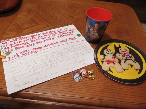 Santa responded to their note before enjoying his snacks.