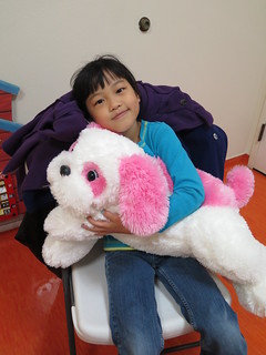 She started out needed to be snuggled up with me, but later in the day she was happy to lay on the floor and play. We let her watch TV and the big girls played with her and she slept all night!