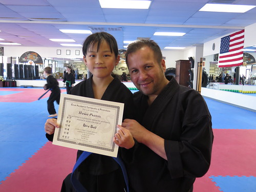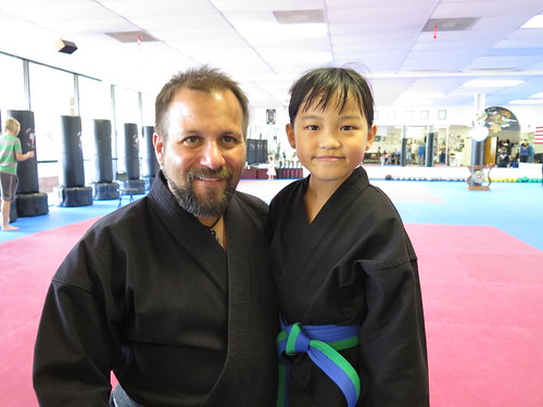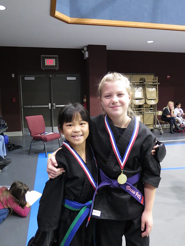 This is Nadia and Lyric after they competed. Nadia was 3rd in Kata (forms) and 2nd in sparring. Lyric took 1st in both and Nadia was so excited for both of them. Look at that smile!