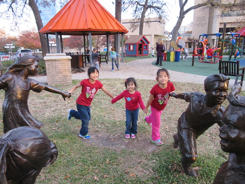 Later in the afternoon we headed for Texas Scottish Rite Hands Down Support group Christmas party. They had toys and snacks for all the kids and a local theater group did a holiday performance with singing and dancing. The girls got a big kick out of that. They played on the playground with some of the kids from the party afterwards.