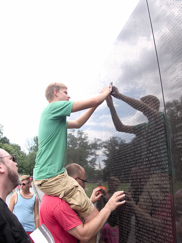 At last we worked our way over the Vietnam Memorial. It’s hard to express how emotional this was to see Nadia standing on Mike’s shoulders to take a rubbing of her grandpa’s name. It was a very different experience for Mike to come here now that we have children.