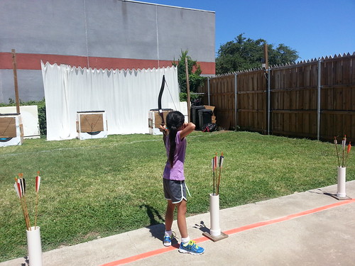 The week after China Camp, Nadia and her best bud Reagan were signed up for Archery Camp. They have archery at the same place where Reagan takes taekwondo, so we drove over there every day for Nadia to join in the fun. She loved every bit of it! Like most athletic type things, she ended up being naturally good and has such good body control she did well with the bow.