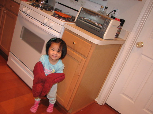 When I was making lunch one afternoon Nadia grabbed the pot holders and said, “I cook!! I cook!!”