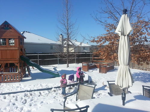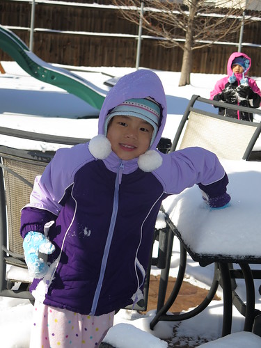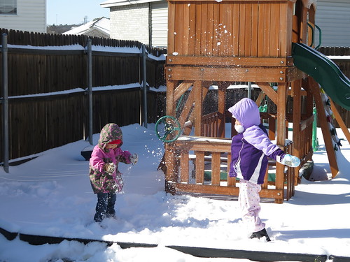 We woke up to 4″ of beautiful, fluffy snow and the sun was shining so we got the girls right out there!