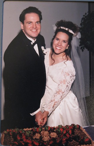 Mike and I on our wedding day in 1995. Our friends decorated this cake from Sam’s Club for us. So sweet.