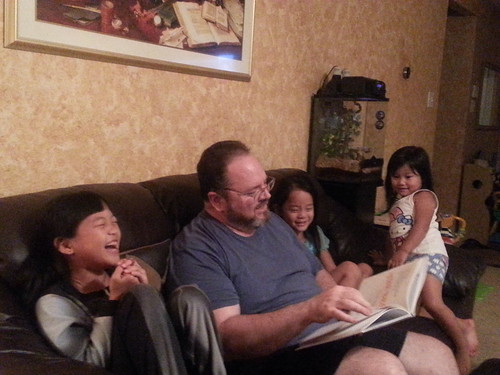 Daddy reading them the book with no pictures.