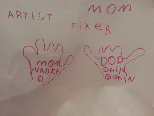 Amelie made this at camp. She traced her hands and said when she grows up she wants to be a “mom, artist and fixer.”