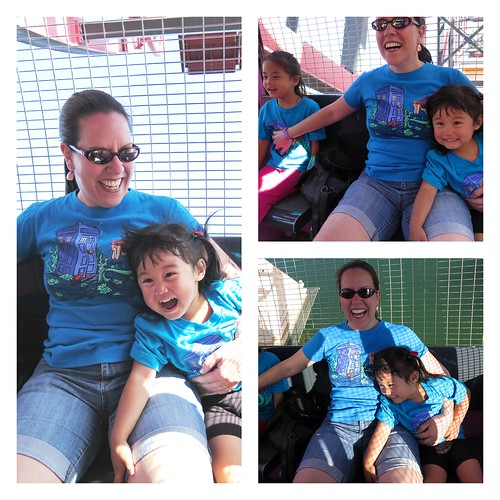 Mike got our car on Mickey’s Fun Wheel swinging so fast and the girls loved it!